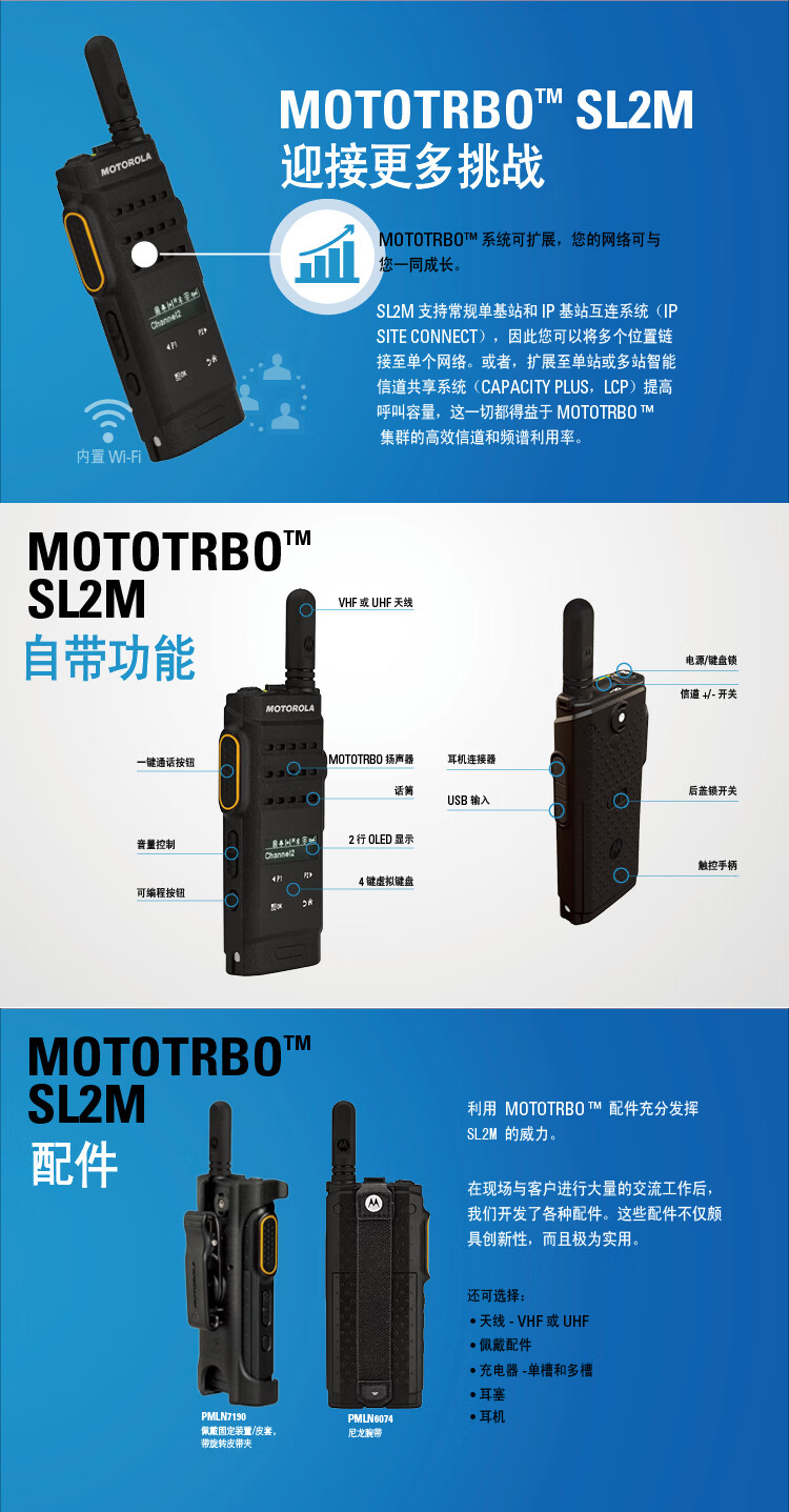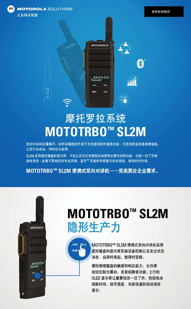 采購:摩托羅拉(Motorola)SL2M對講機數(shù)字顯示屏 超薄 商超 時尚 便攜式對講機 黑色